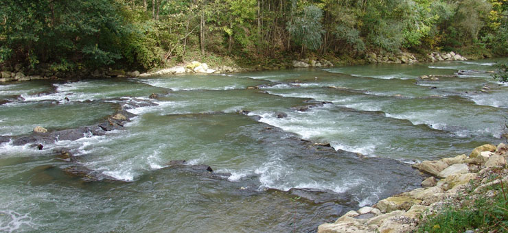 Mangfall Stadt Rosenheim naturnahe Sohlgleite